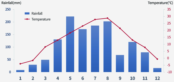 Seoul’s Average Temperature and Rainfall by Month (unit ℃, mm)