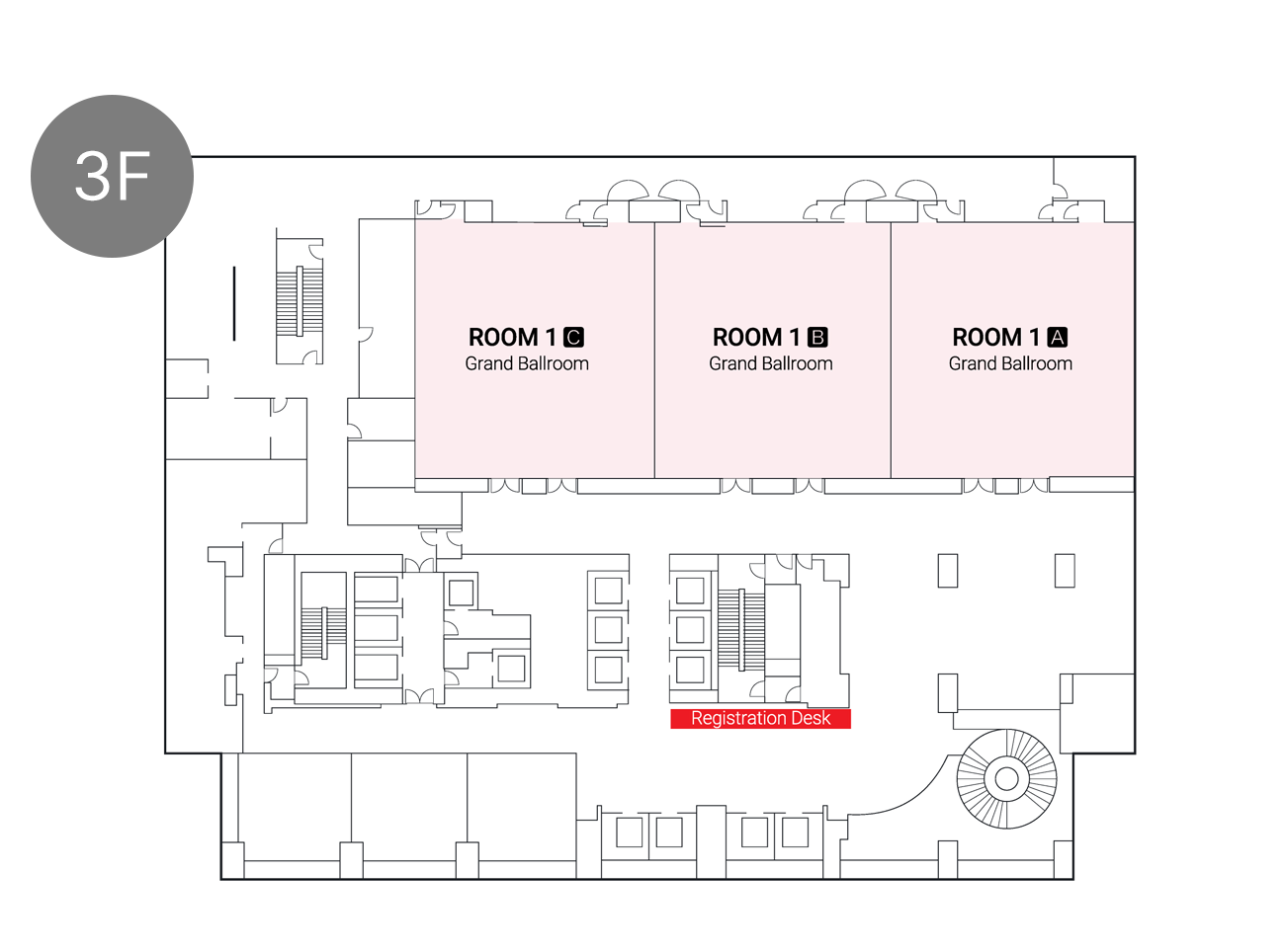 The meeting will take place on the 3rd, 5th, and 6th floors of the hotel. The Registration Desk will be located on the 3rd floor.