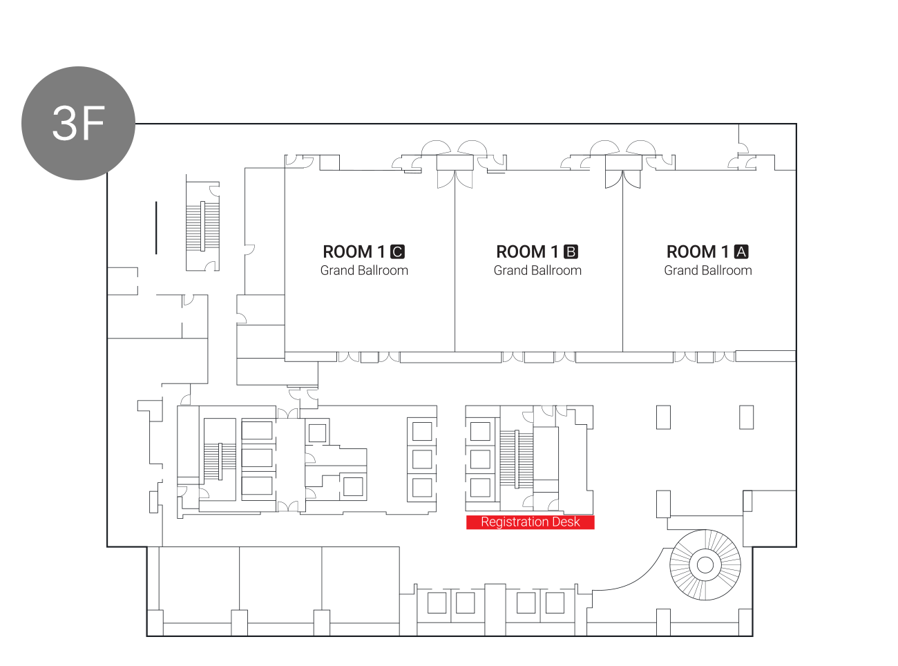 The meeting will take place on the 3rd, 5th, and 6th floors of the hotel. The Registration Desk will be located on the 3rd floor.